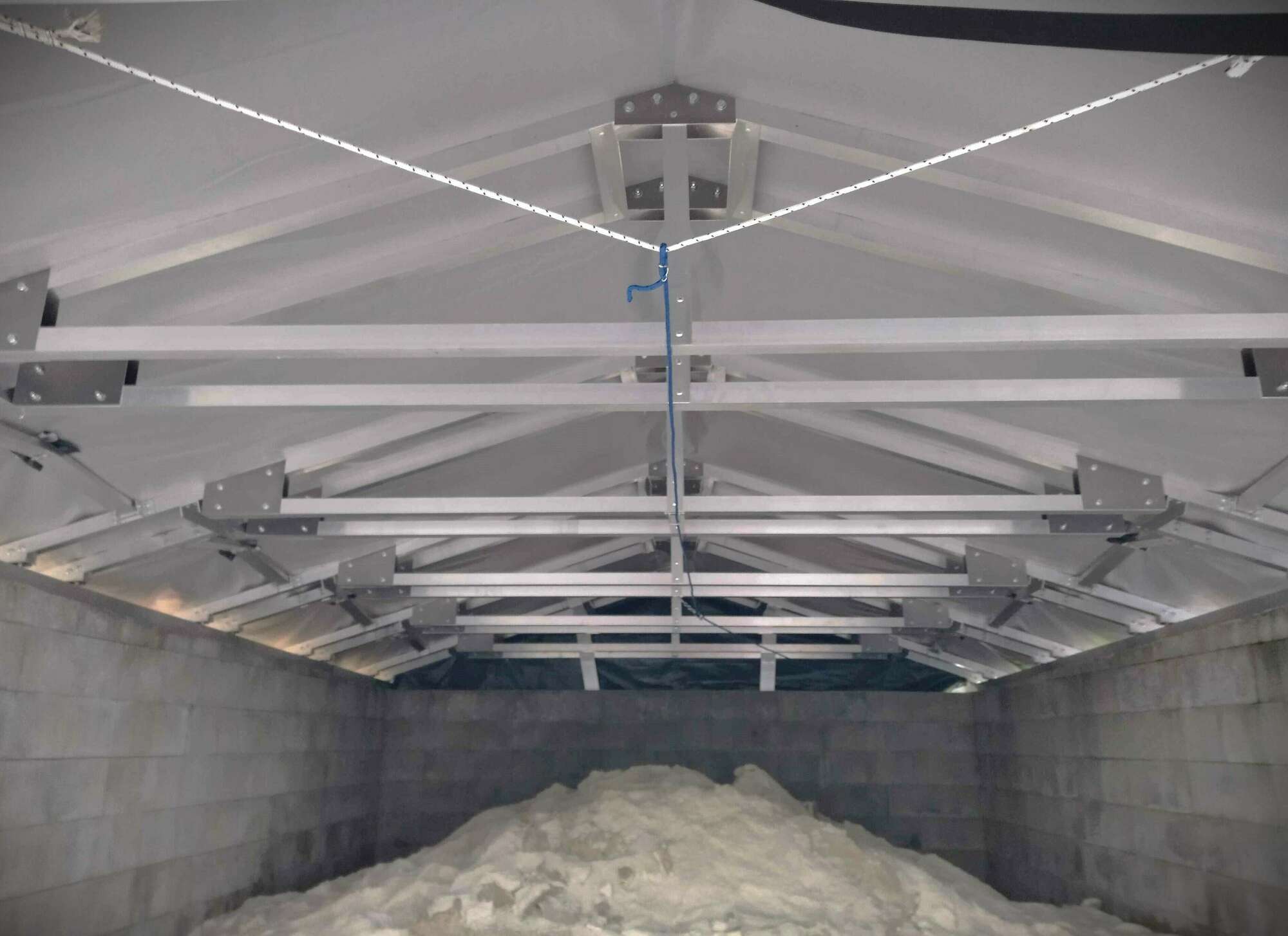 HE CONCEPTION étudie, conçoit, fabrique et pose des couvertures en ossature aluminium et toile PVC pour protection des zones de stockage en vrac. Pour les industriels, les collectivités, les travaux publics ainsi que le traitement de déchets, nous protégeons tout type de matériaux sensible à l'eau tel que : du sel, de l'enrobé, du plâtre, des pellets bois, des copeaux de bois, des transformateurs, des essieux, etc...